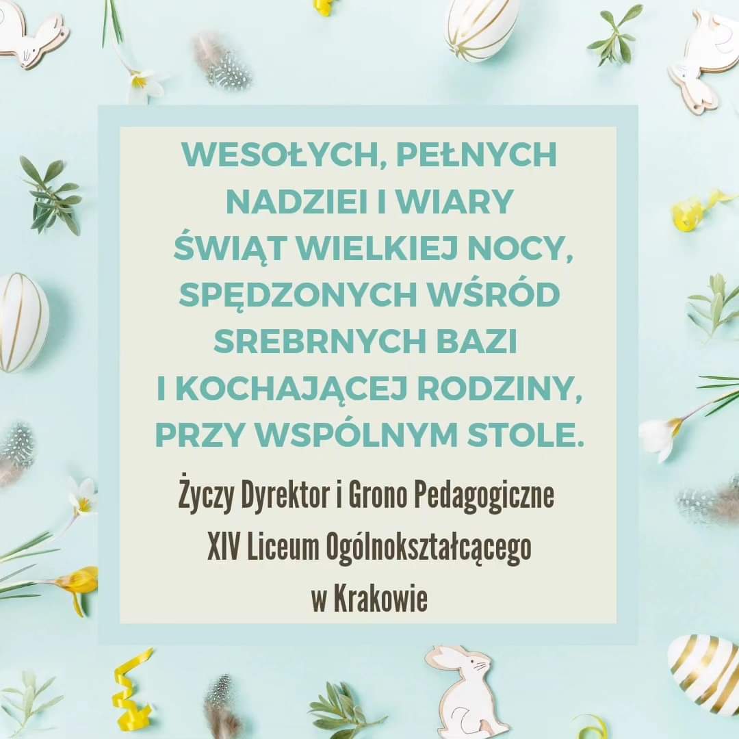 Dyrektor, Wicedyrektor, Grono Pedagogiczne i cała Społeczność XIV Liceum Ogólnokształcącego w Krakowie
