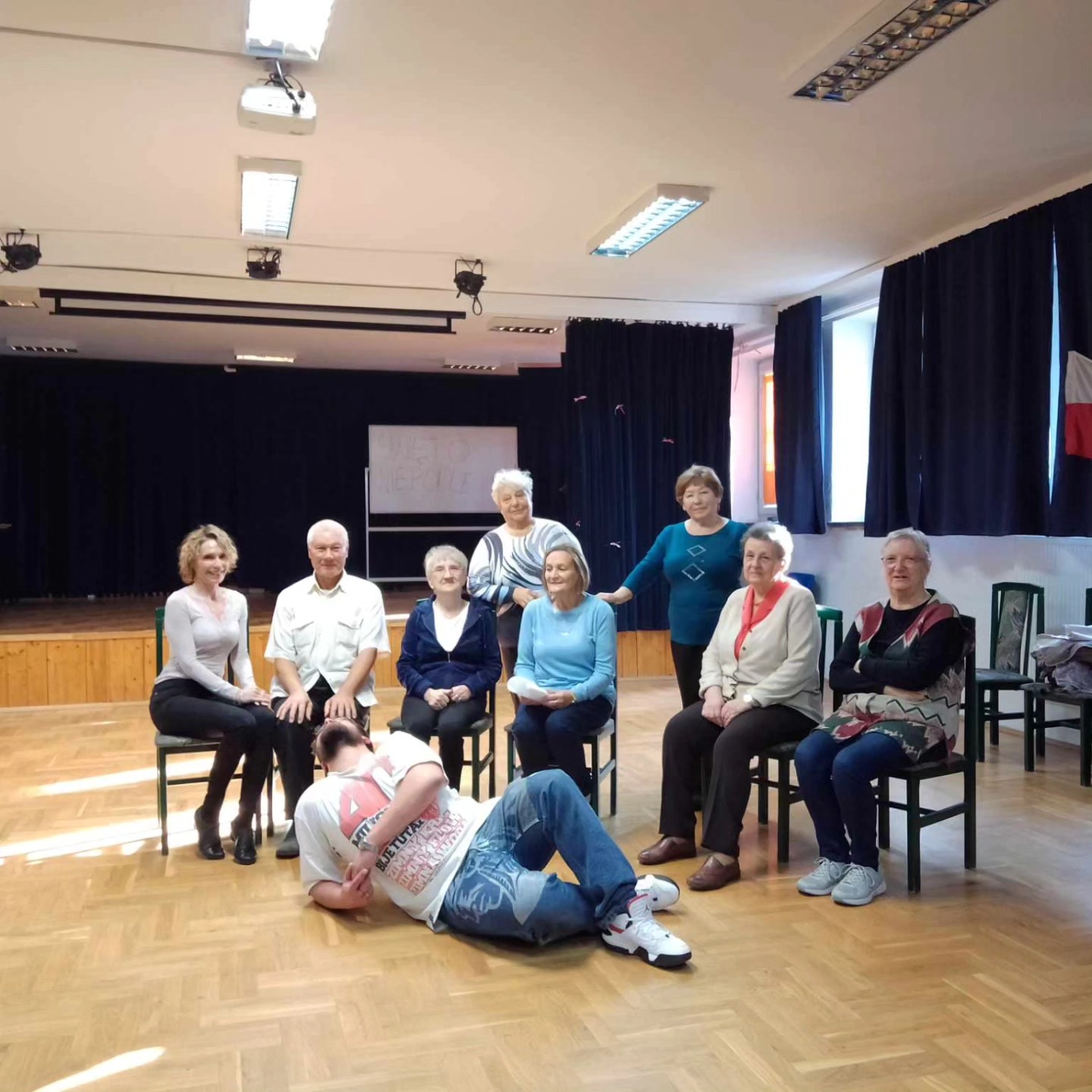9 listopada 2023 r. w auli naszej szkoły, w ramach współpracy międzypokoleniowej z środowiskiem lokalnym, odbyły się wspaniałe Warsztaty Teatralne dla Seniorów Fundacji Nie Dzieli Nas Wiek. Seniorzy mający już za sobą wiele występów, o czym chętnie opowiedzieli, błyskawicznie odnaleźli się w zadaniach teatralnych. Warsztaty poprowadził Pan Adrian Kolos przy wsparciu Pani Edyty Zaremby. Chwilę później na zajęcia dołączyli uczniowie klasy 2e, którzy - podobnie jak Państwo Seniorzy - zaprezentowali ciekawe etiudy. Wszystkim serdecznie dziękujemy.![]()