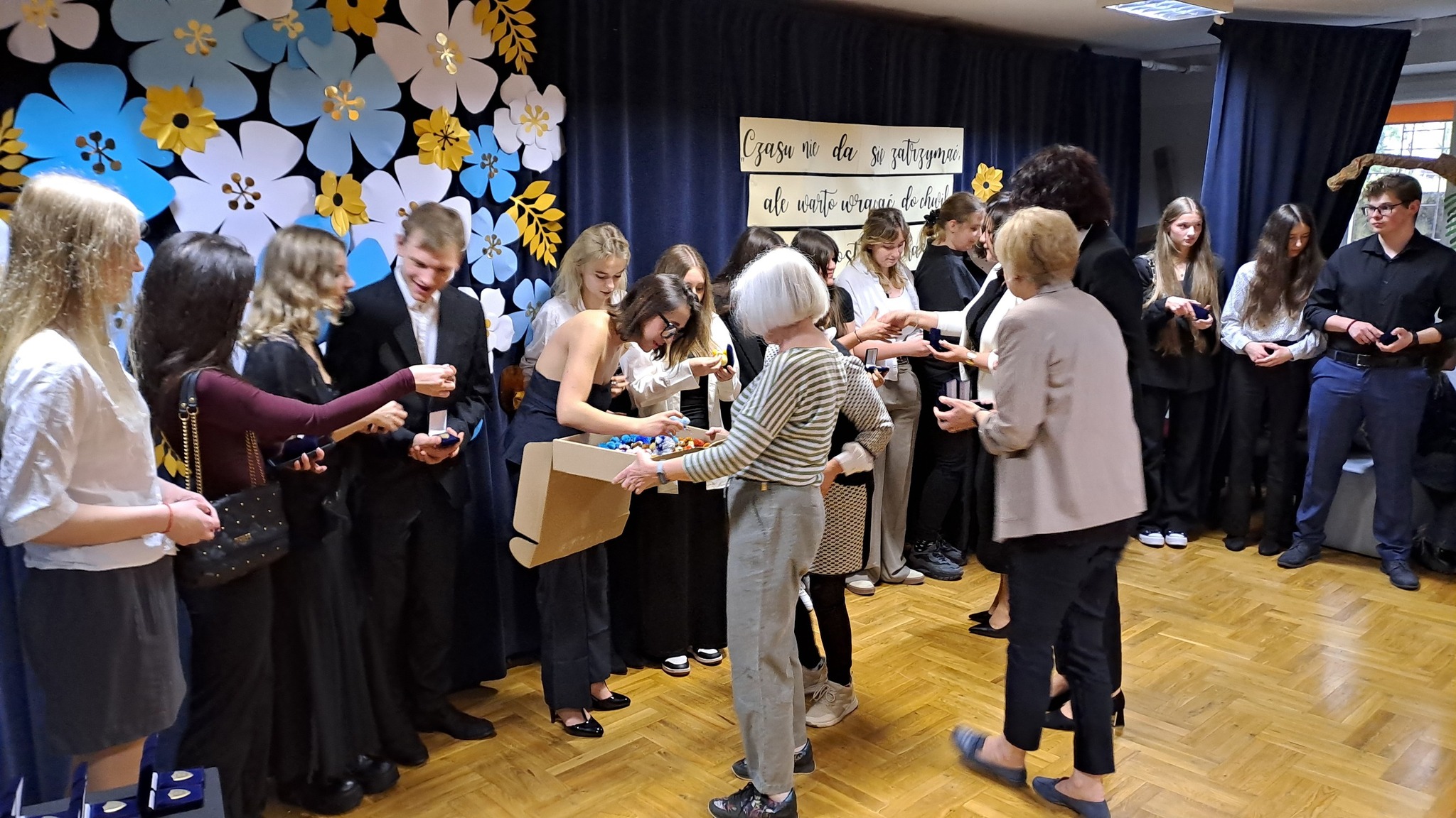 Absolwenci otrzymali pamiątkowe tarcze XIV LO, a także przygotowane przez Panie Seniorki z fundacji "Nie dzieli nas wiek" breloczki. Niektórzy uczniowie zostali nagrodzeni zabawnymi dyplomami, m.in. za największego śpiocha, najlepszy duet, czy największego spóźnialskiego.